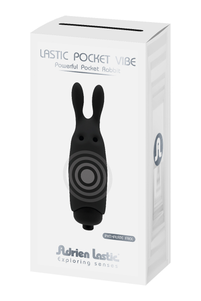 "Lastic pocket Vib Black", Un petit lapin vibrant qui tient dans la poche pour ne jamais perdre une occasion de se faire du bien.