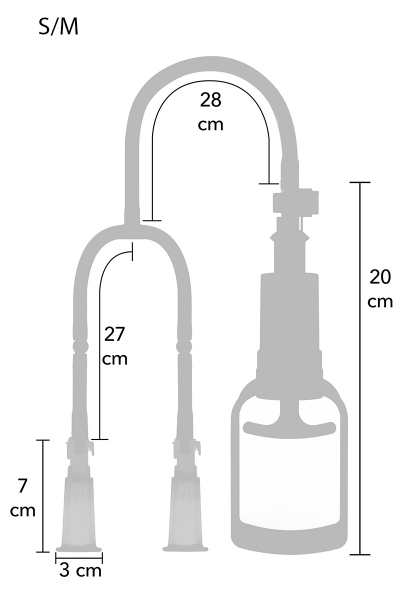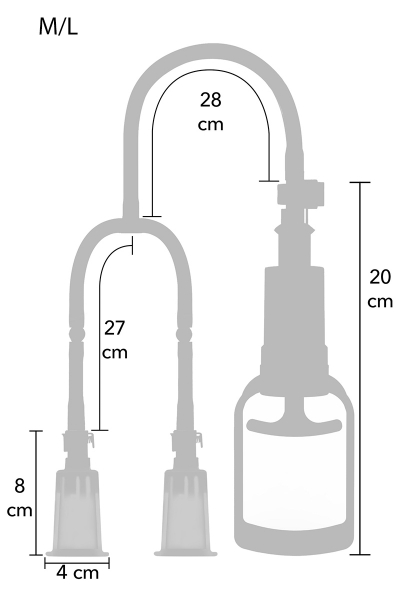 De couleur blanche et transparente, la pompe est disponible avec ventouses de taille S/M ou M/L.